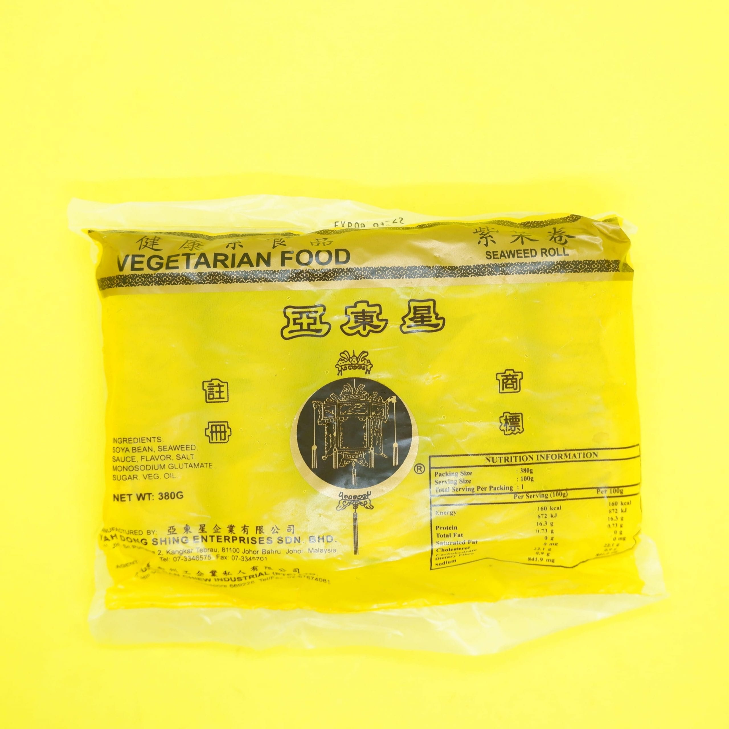 Ingredients: Soya Bean, Seaweed Sauce, Flavor, Salt, Monosodium Glutamate, Sugar, Veg Oil.